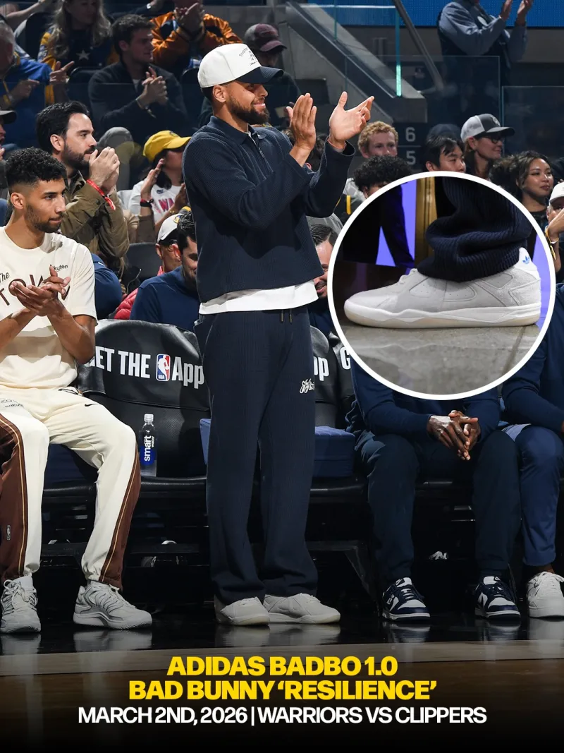 3月2日勇士主场迎战快船的比赛期间,上脚歌手Bad Bunny(坏痞兔)签名鞋adidas Badbo1。
